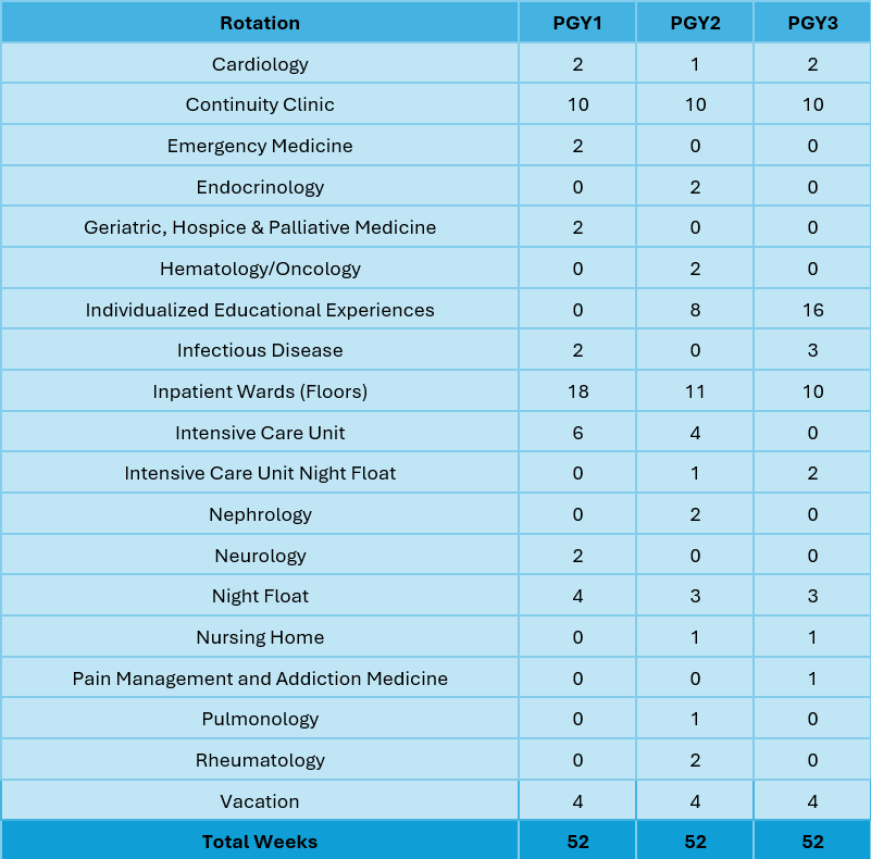 The Ambulatory Continuity Clinic is a mandatory core rotation designed to impart competencies in outpatient medicine.